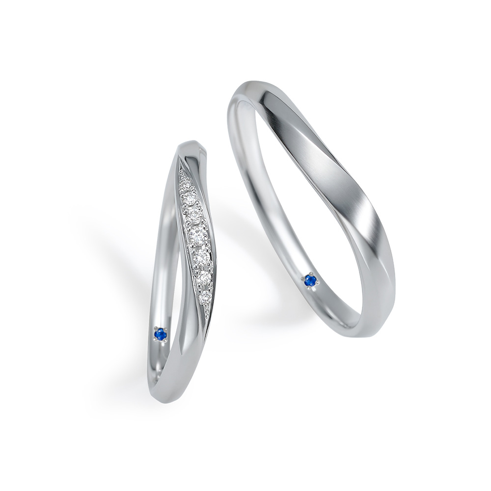 純プラチナはPt1000で表記。ジュエリーで多く使用されるPt900とは、千分率で表されており、純度は90%になります。日常生活での変質・変色のないプラチナは、素材そのものの無垢な白い輝きから特にブライダルリングで人気。純度が高いため、金属アレルギーの心配も少ない素材です。